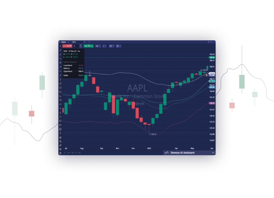 DXtrade nabízí více než 80 indikátorů, pokročilé nástroje pro technickou analýzu, více zobrazení grafů a propojení se seznamem sledovaných symbolů. Tento pokročilý grafový balíček umožňuje provádění technické analýzy na více časových rámců najednou a obchodování přímo z grafu.